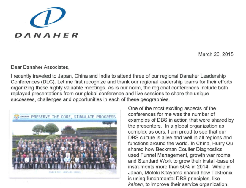 图释:引自Danaher领导力会议(部分): 时任贝克曼库尔特中国区高管的屈建(Hurry Qu)分享以漏斗管理、标准工作等方法驱动业务增长。